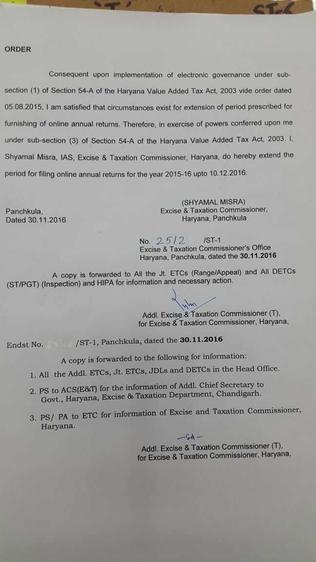 as per attached letter ,the date for fillig annual return vat r2 15-16 has been extended till 10th dec 2016.